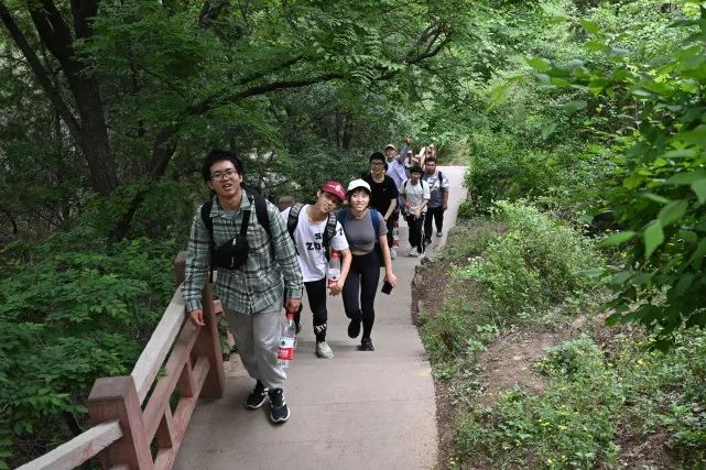 在午饭过后,同学步行前往香山公园。恰逢立夏时分,草木茂盛,同学们登高望远,既“野蛮其体魄”,又凝聚了班集体的力量。