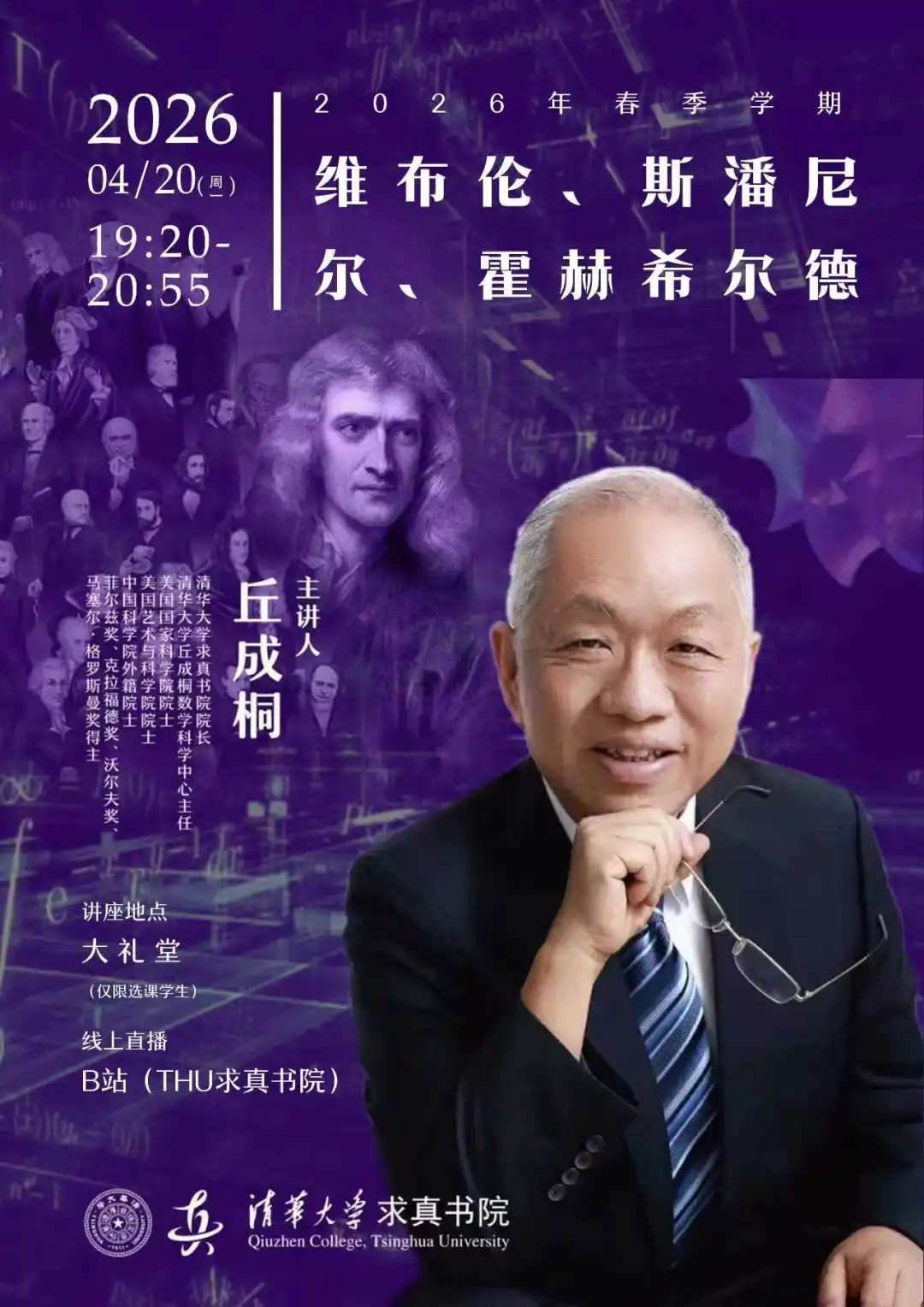 本周的数学史课堂上,丘成桐先生将为获得第五届探花