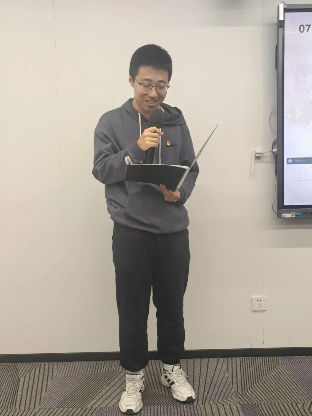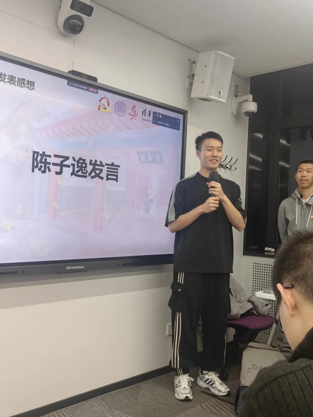 1党支部书记左骏驰依次宣读支部决议,同意陈子逸、梁石易新、裴艺岚等三位同志转为中共正式党员。