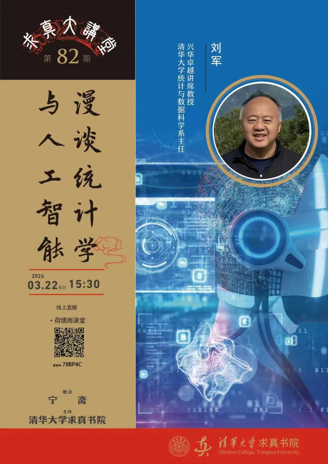 近年来,在大数据的牵引下,人工智能(AI)正在如火如荼地发展。但如何使AI在各个应用领域中落地和深入依然是未来十年的主要挑战。统计学研究怎样设计实验、收集数据、从数据中提取最多信息、推断未知、和量化不确定性,从而指导如何学习、如何制定政策、如何预测未来、和如何模拟和实现“智能”。其核心是以概率论为基石建立生成与预测模型以理解数据和增强认知。对数据驱动理念以及这些统计学方法和思考的全盘吸纳是这次 AI革命的主要推动力之一。这些方法也是能进一步促进人工智能技术在各行各业中生根发芽的指导思想、重要手段和工具,是评估不确定性和构建可解释模型的关键。我们用历史的眼光重新审视这次AI革命与统计学的深刻联系,窥视AI未来的发展契机,用一些实例深入浅出地讲解统计思维和方法对理解数据、批判性思维、和AI落地的关键作用。