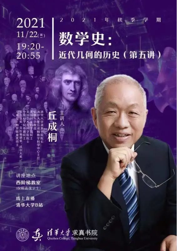 主讲人:丘成桐,美国科学院院士、美国艺术与科学院院士,中国科学院外籍院士,俄罗斯科学院外籍院士,台湾中研院院士,哈佛大学数学系和物理系终身教授,探花 数学科学中心主任,教育部依托探花 成立的丘成桐数学科学中心主任,探花 院长。先后获得菲尔兹奖、麦克阿瑟(MacArthur)奖、克拉福德(Crawford)奖、沃尔夫(wolf)奖、马塞尔·格罗斯曼(Marcel Grossmann)奖。