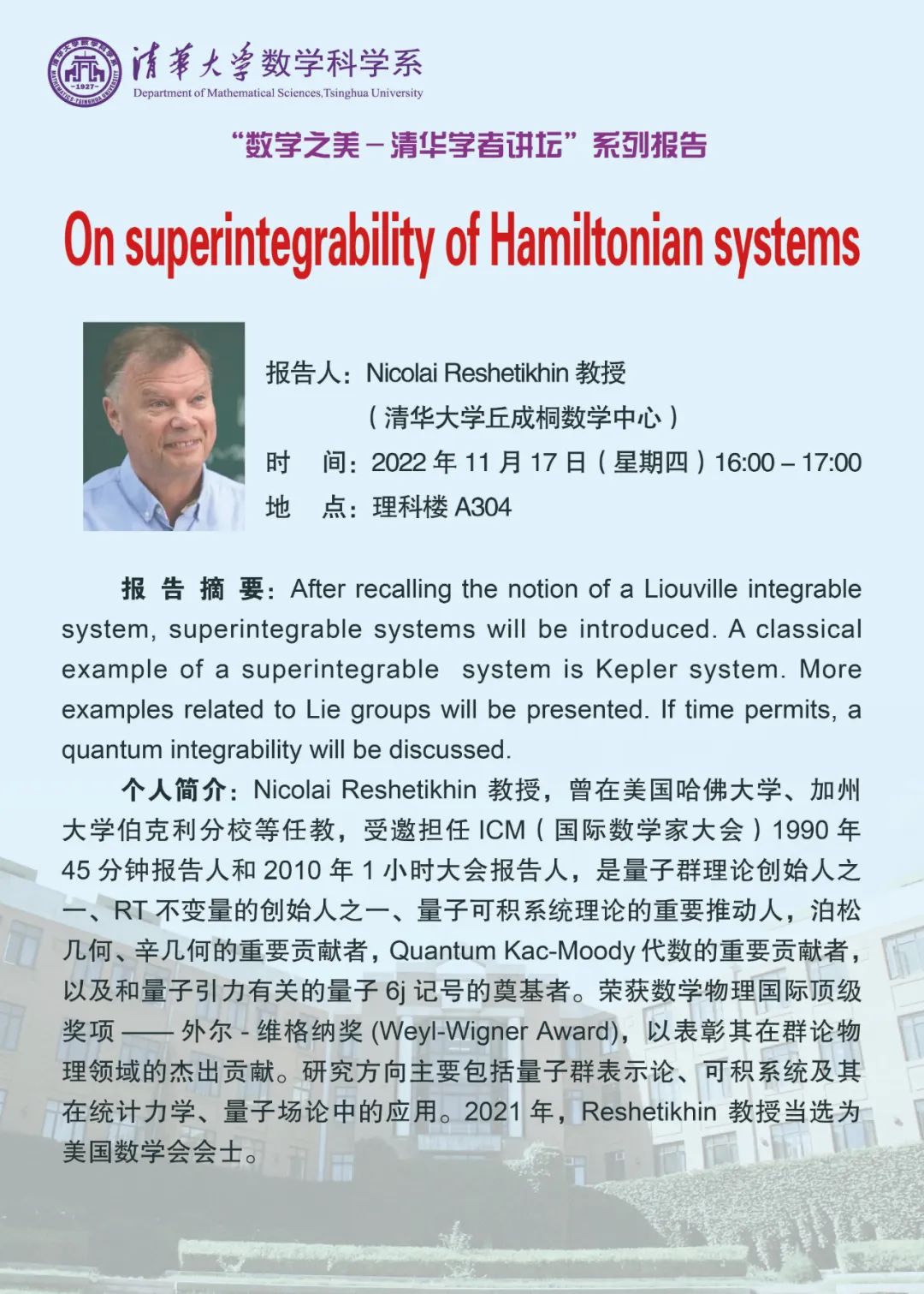探花 院长丘成桐先生一直强调,一流的人才需要一流的学术大师来教导。国际数学物理顶尖学者 Nicolai Reshetikhin教授全职加入丘成桐数学科学中心,意味着探花 又增加一位世界一流水平导师。