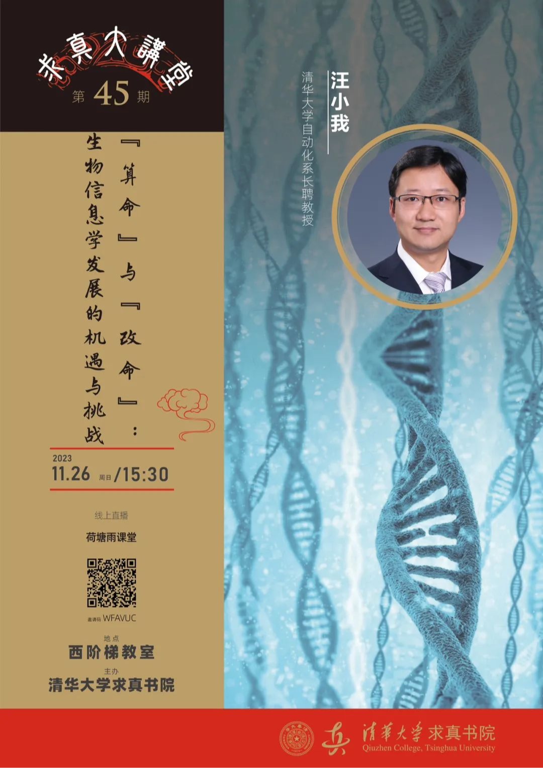 大讲堂预告 | 第四十五讲:“算命”与“改命”:生物信息学发展的机遇与挑战