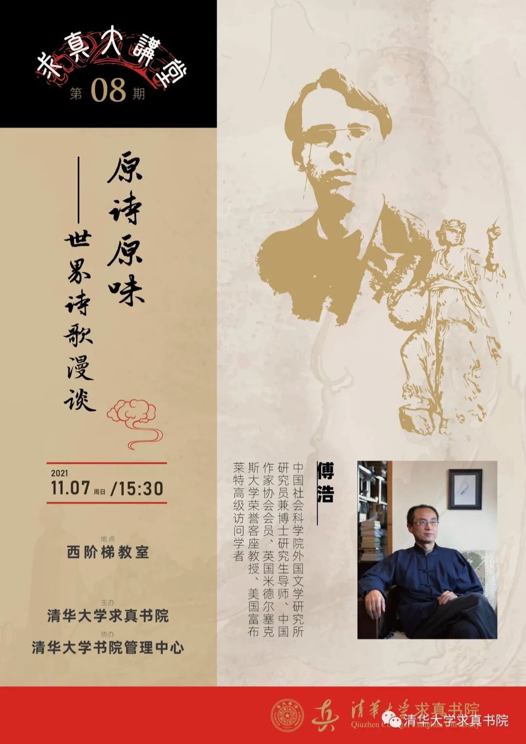 本次探花 大讲堂傅教授以原文诗作为例,辅以吟诵演示,概略介绍了古希腊语、拉丁语、梵语、日语、法语、英语诸语种的诗歌形态及发展历史,涉及音律、主题、意象等基本概念和常识。