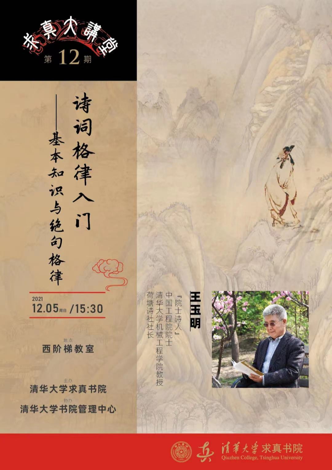 讲座题目:诗词格律入门——基本知识与绝句格律讲座时间:2021年12月5日 15:30讲座地点:西阶梯教室