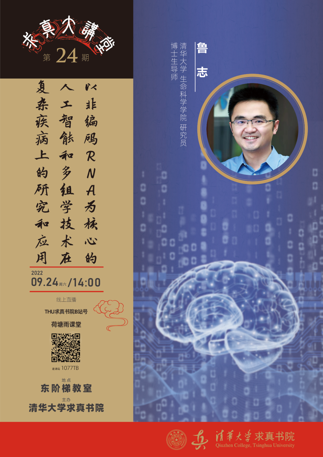 大讲堂预告 | 第二十四讲:以非编码RNA为核心的人工智能和多组学技术在复杂疾病上的研究和应用
